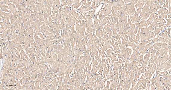 Immunohistochemical analysis of paraffin embedded human heart tissue slide using IHC0466H (Human Aspartate Aminotransferase IHC Kit).