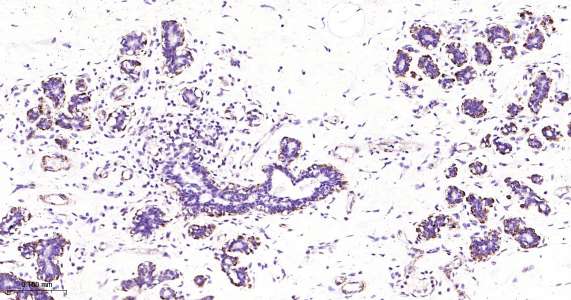Immunohistochemical analysis of paraffin embedded human mammary gland tissue slide using IHC0473 (Vinculin IHC Kit).
