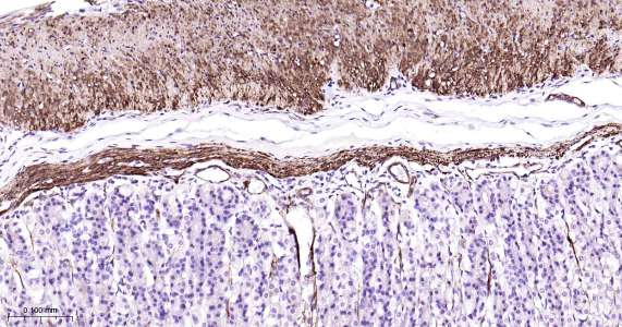 Immunohistochemical analysis of paraffin embedded mouse stomach tissue slide using IHC0473 (Vinculin IHC Kit).