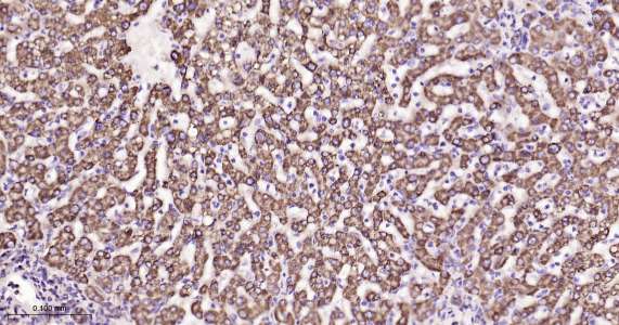 Immunohistochemical analysis of paraffin embedded mouse liver tissue slide using IHC0480 (Smad3 IHC Kit).
