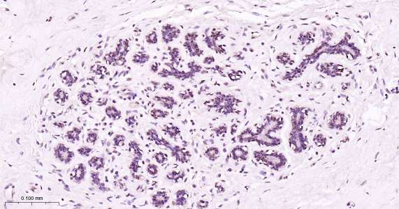 Immunohistochemical analysis of paraffin embedded human mammary gland tissue slide using IHC0482H (Human Phospho-STAT5A (Y694) IHC Kit).