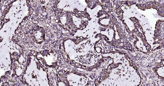 Immunohistochemical analysis of paraffin embedded human renal carcinoma tissue slide using IHC0488H (Human P4HB IHC Kit).