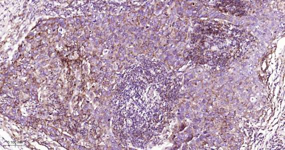 Immunohistochemical analysis of paraffin embedded human breast cancer tissue slide using IHC0491H (Human CPT1A IHC Kit).