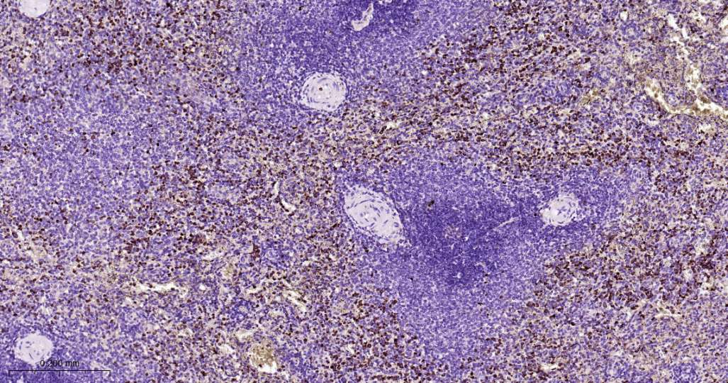 Immunohistochemical analysis of paraffin embedded Human spleen tissue slide using IHC0607H (Human CD63 Kit).