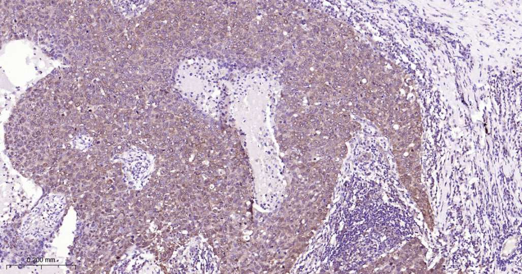 Immunohistochemical analysis of paraffin embedded Human lung cancer tissue slide using IHC0608H (Human STAT3 Kit).