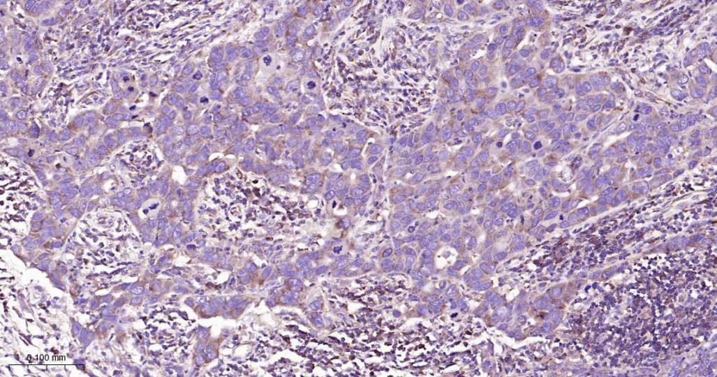 Immunohistochemical analysis of paraffin embedded Human breast cancer tissue slide using IHC0612H (Human ABCE1 Kit).