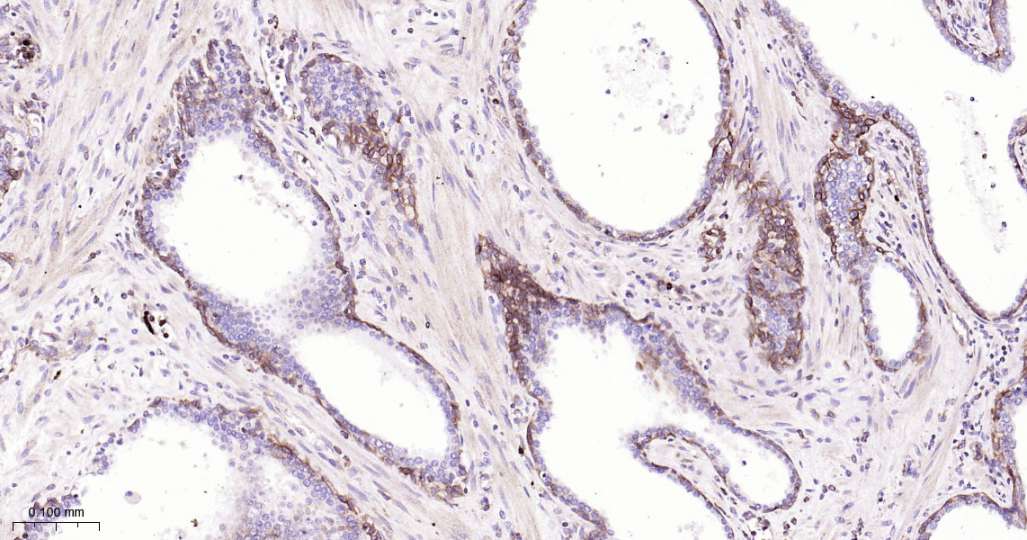 Immunohistochemical analysis of paraffin embedded Human prostate cancer tissue slide using IHC0614H (Human STING1 Kit).