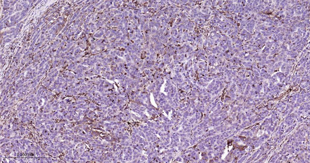 Immunohistochemical analysis of paraffin embedded Human ovarian cancer tissue slide using IHC0614H (Human STING1 Kit).
