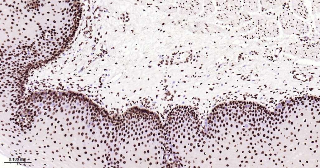 Immunohistochemical analysis of paraffin embedded Human esophagus tissue slide using IHC0615H (Human ILF3 Kit).