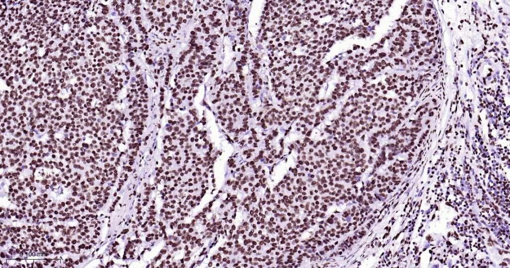 Immunohistochemical analysis of paraffin embedded Human esophageal cancer tissue slide using IHC0615H (Human ILF3 Kit).