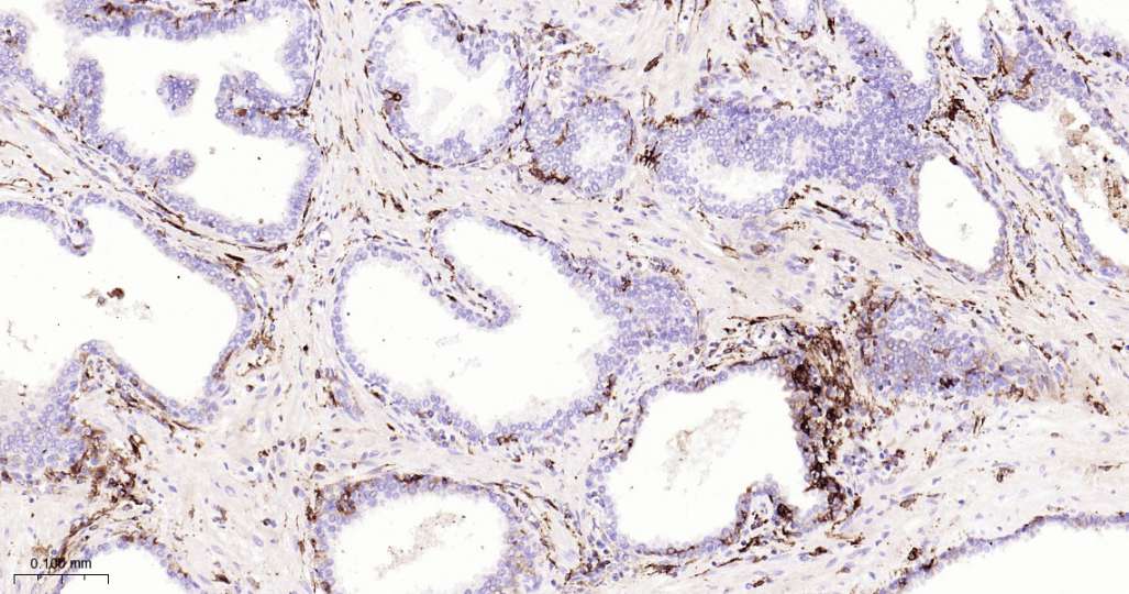 Immunohistochemical analysis of paraffin embedded Human prostate cancer tissue slide using IHC0617H (Human HLA-DPB1 Kit).