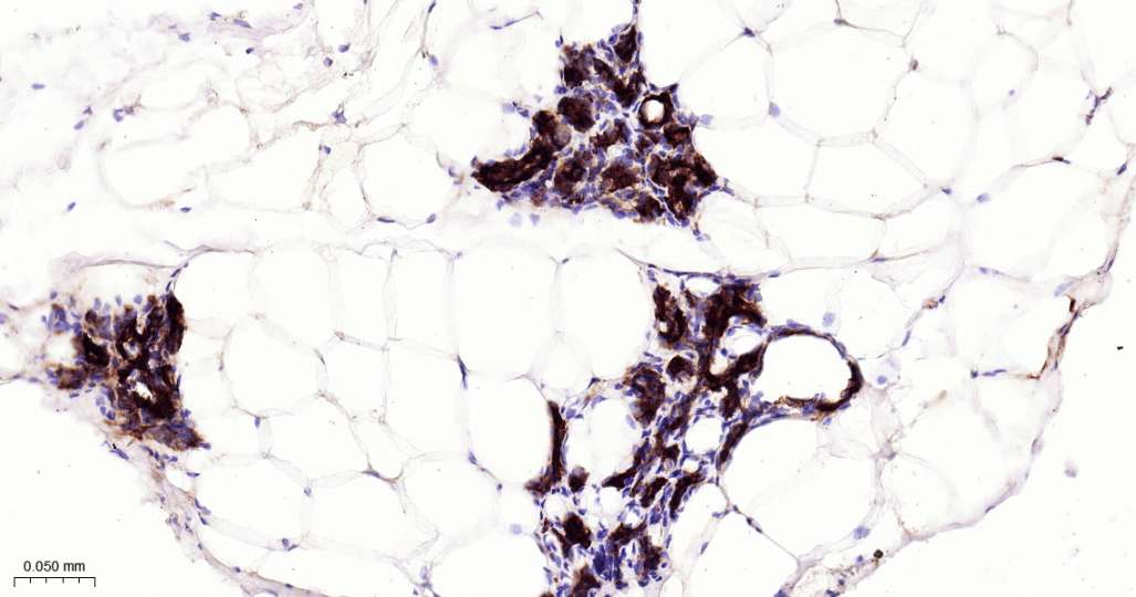 Immunohistochemical analysis of paraffin embedded Rat mammary gland tissue slide using IHC0645R (Rat EIF2S1 Kit).