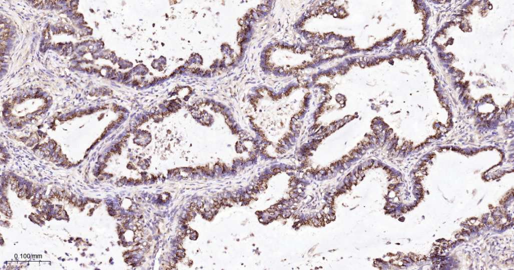 Immunohistochemical analysis of paraffin embedded Human prostate tissue slide using IHC0653H (Human GOLPH2 Kit).