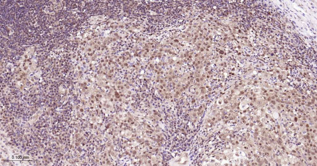 Immunohistochemical analysis of paraffin embedded Human gastric cancer tissue slide using IHC0662 (RBX1 Kit).