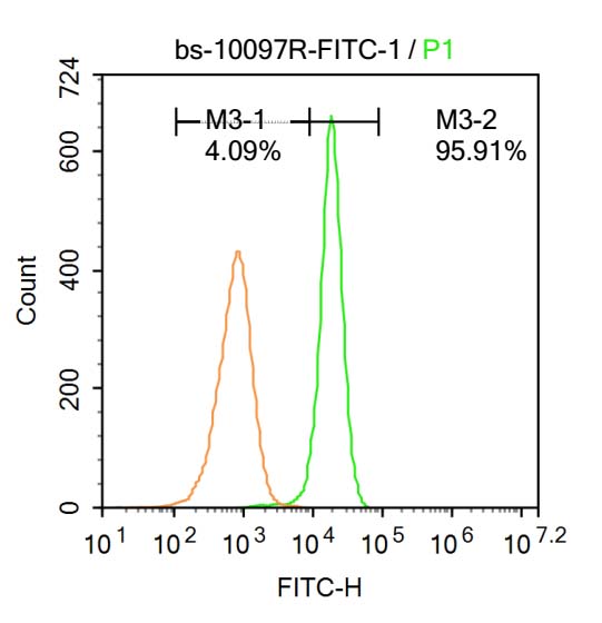 Primary Antibody (green line): Rabbit Anti-RRAGC antibody (bs-10097R)